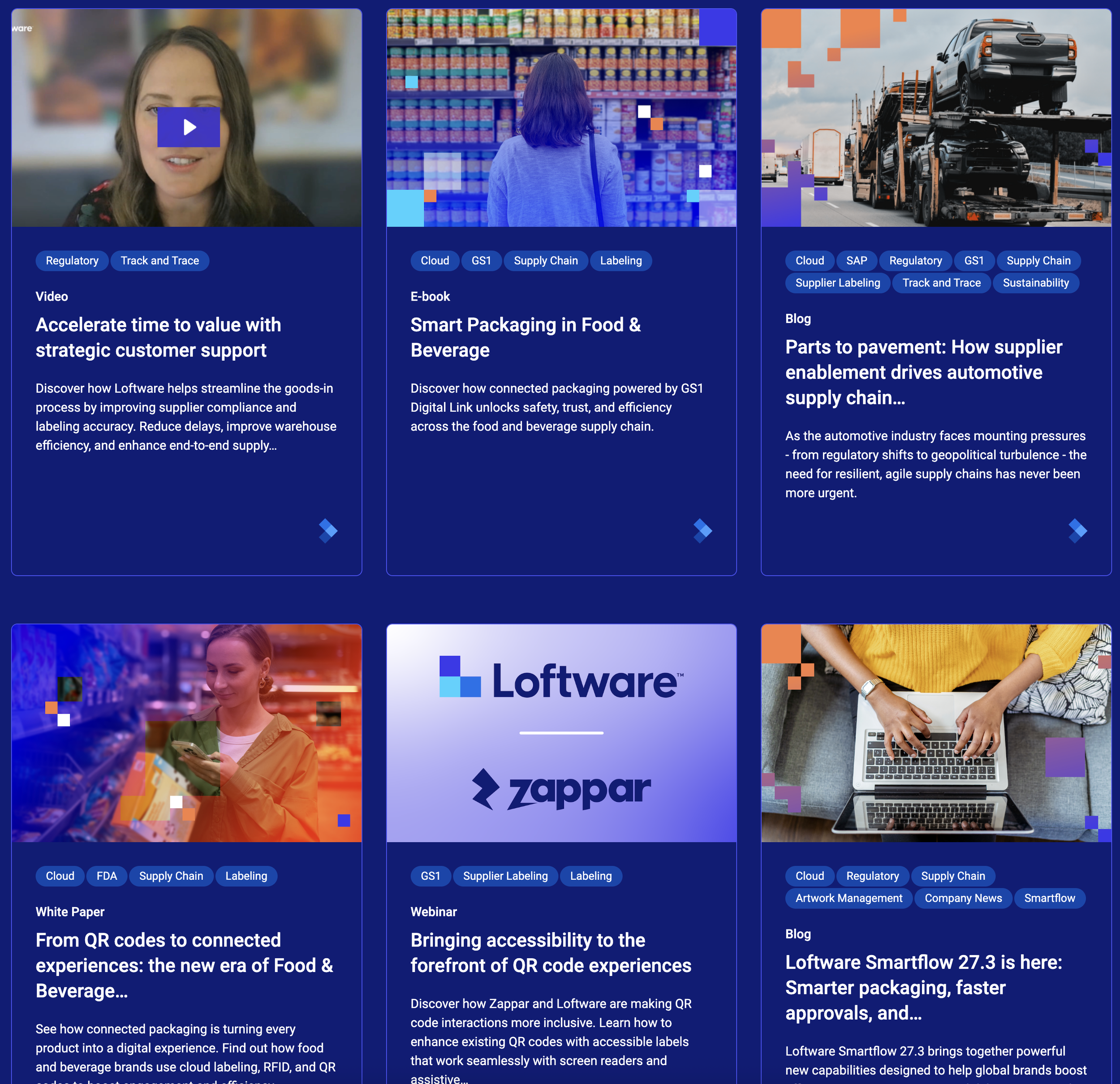 In order to brand the page more, I began designing all resource teasers (Right block). Not only was the page more curated and visually tasteful, but any time the articles get promoted, the Loftware brand is still coming through.